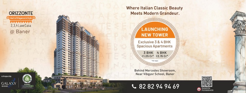 Discover a luxurious lifestyle at Orizzonte Baner, where every detail is designed for comfort, convenience, and class. Offering thoughtfully planned 3 BHK flats for sale in Baner and 4 BHK flats for sale in Baner, the project stands out for its strategic location near key IT hubs, seamless connectivity, and excellent social infrastructure. Galaxy Orizzonte Baner boasts elegant architecture, modern interiors, and 30+ premium amenities to enhance everyday living. Experience true community living in a vibrant, well-connected neighbourhood. With Baner’s rapid development and rising demand, homes at Orizzonte offer strong investment growth potential for the future.