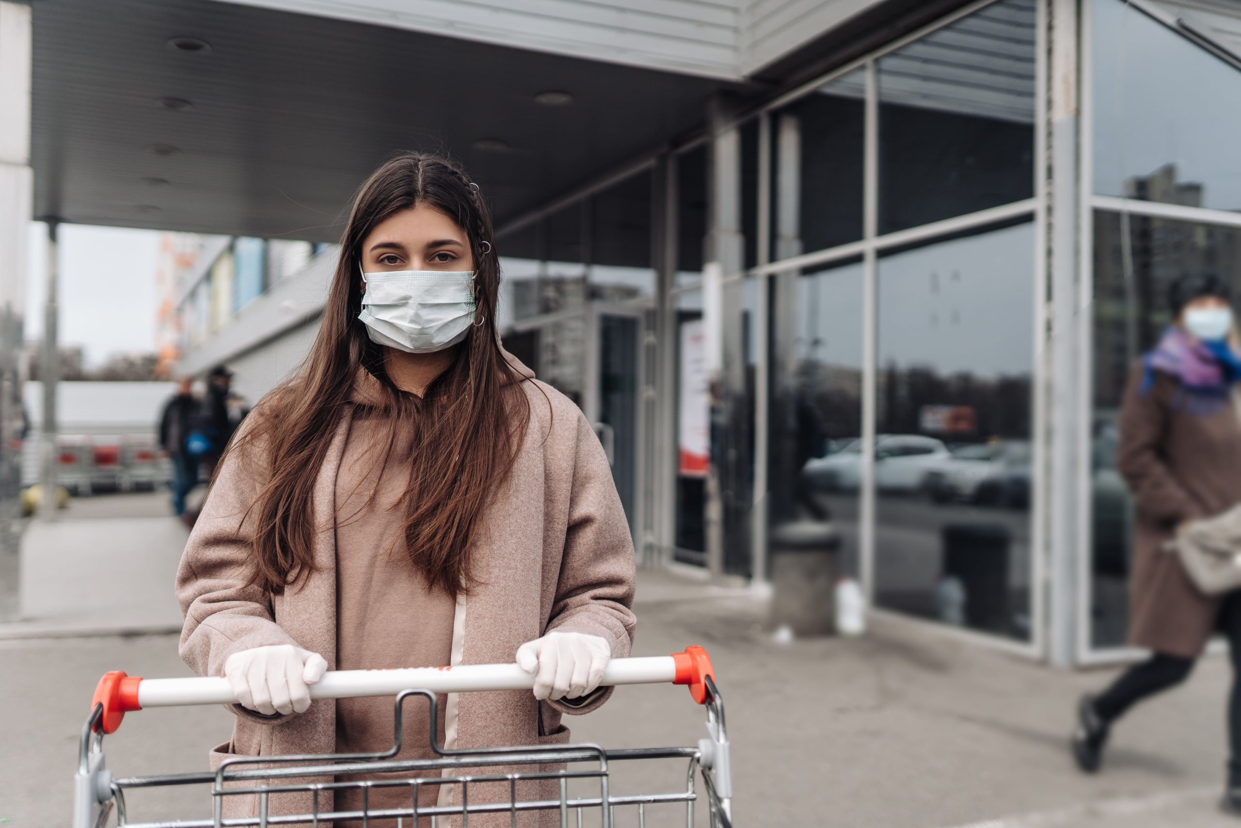 - young-woman-wearing-protection-face-mask-against-coronavirus-pushing-shopping-cart